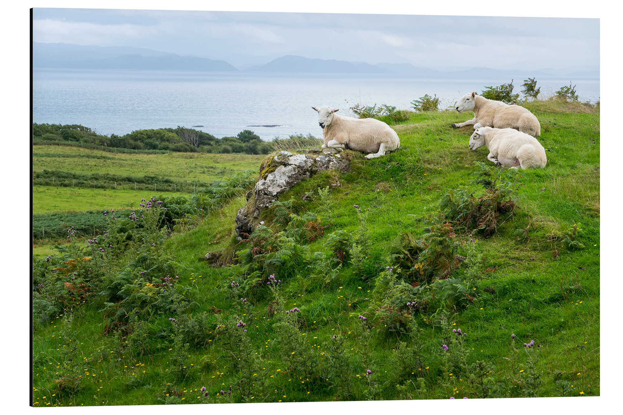 Posterlounge   Wandbilder   Natur   Alubild Schafe ruhen auf einer Weide, Isle of Eigg, Schottland