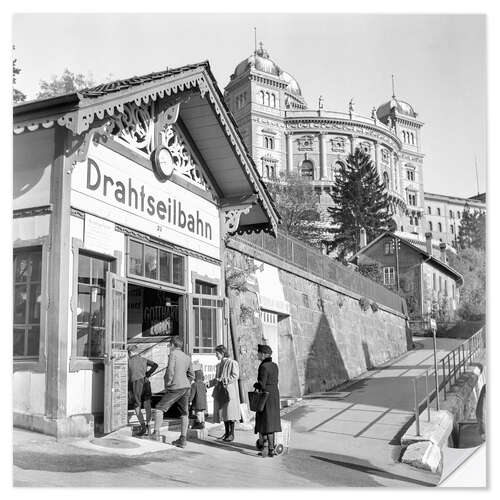 Posterlounge   Wandbilder   Schwarz-Weiß   Wandsticker Drahtseilbahn Marzilibahn, Bern, 1942